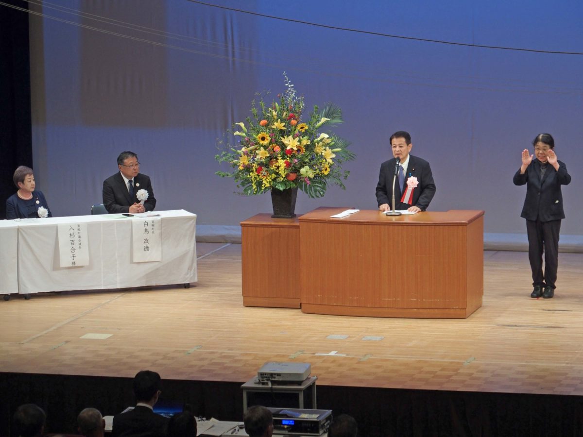 続いて、箕輪町の白鳥政徳町長、入杉百合子町議会議長からご挨拶がありました。