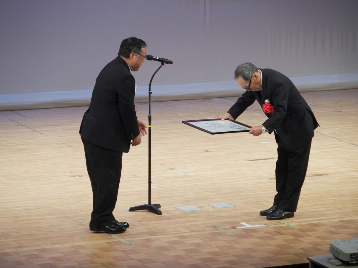 引き続いて、これまでの「箕輪町の歩み」がまとめらた動画の上映、箕輪町の発展に尽力された功労者の皆様に対する「記念功労者表彰・特別感謝状」贈呈が行われました。