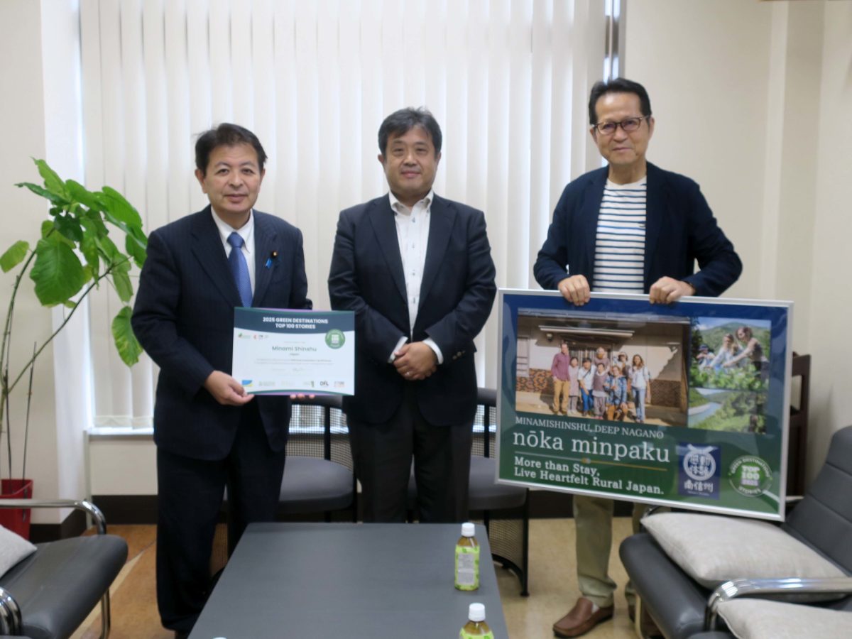 高橋社長からは、農家民泊などの長年の取り組みが評価され、国際認証団体グリーンデスティネーションズによる「世界の持続可能な観光地TOP100選」に南信州地域が選出をされたとの報告を頂きました。