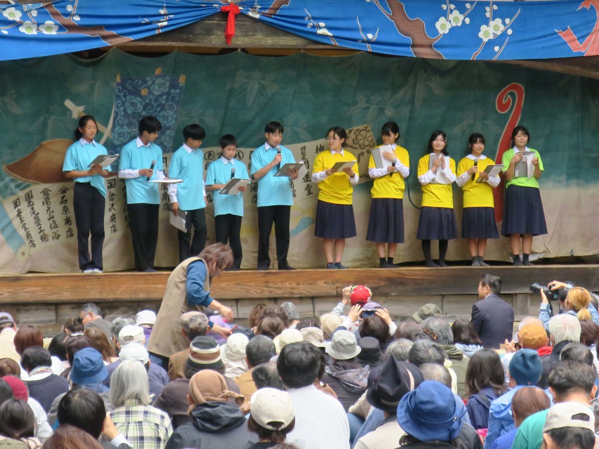 開演の前には、地元の中学生の皆さんが、歌舞伎を見る際の心得や本日の演目のあらすじなどについて解説をしてくれました。