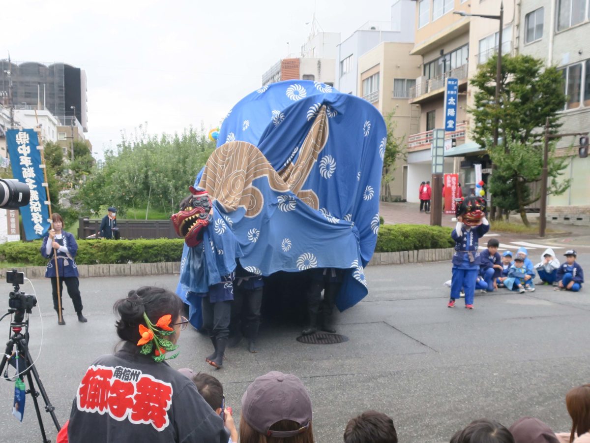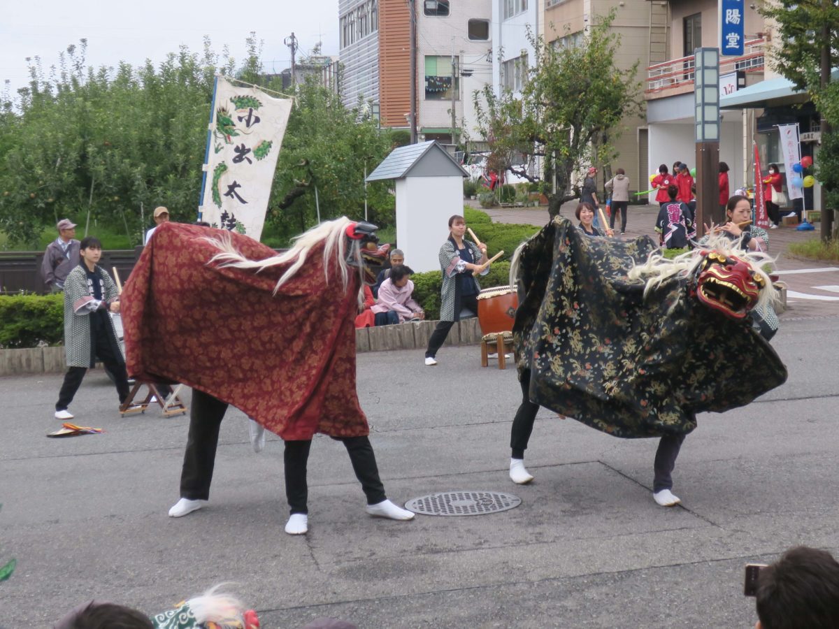 鼎中平獅子舞保存会の皆様の演技です。右の子どもの獅子もかわいかったです。