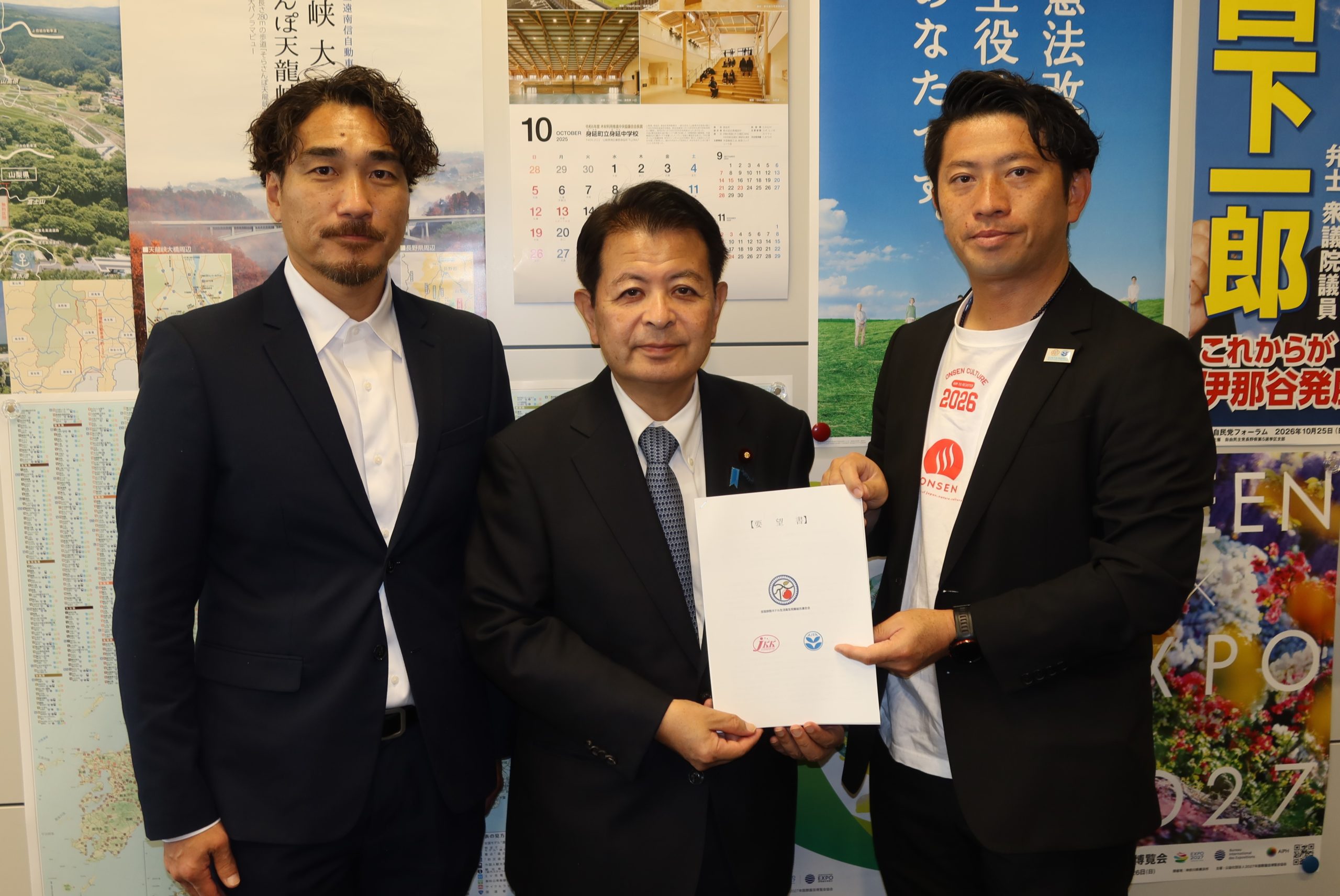 午前10時30分からは、長野県旅館ホテル組合青年部の河野克幸青年部長と小林篤史前青年部長から要望書を頂きました。