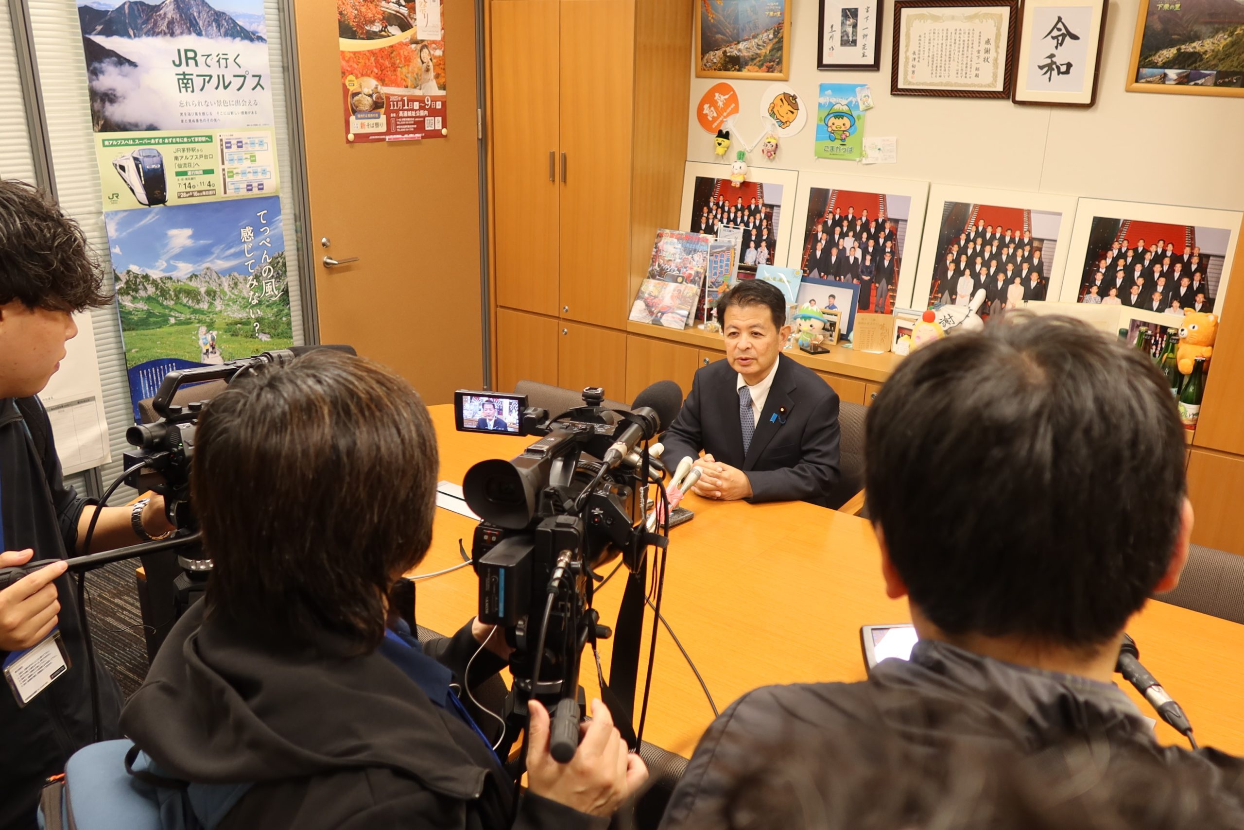 午後5時過ぎからは、地元報道関係の皆様がお集りになり、本日の首班指名選挙の結果に関する受け止めや、高市早苗総理大臣への期待や、日本維新の会との連立に関しての取材を受けました。