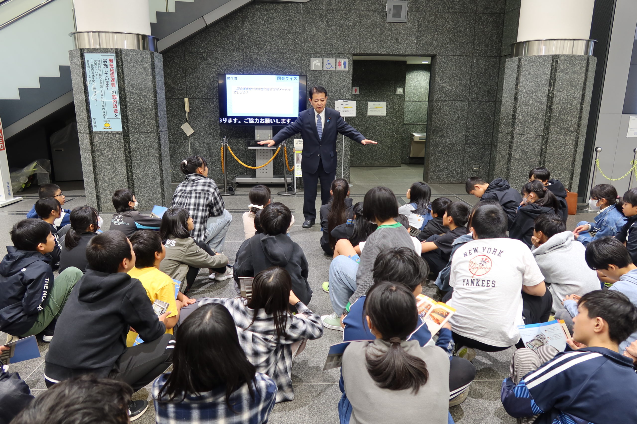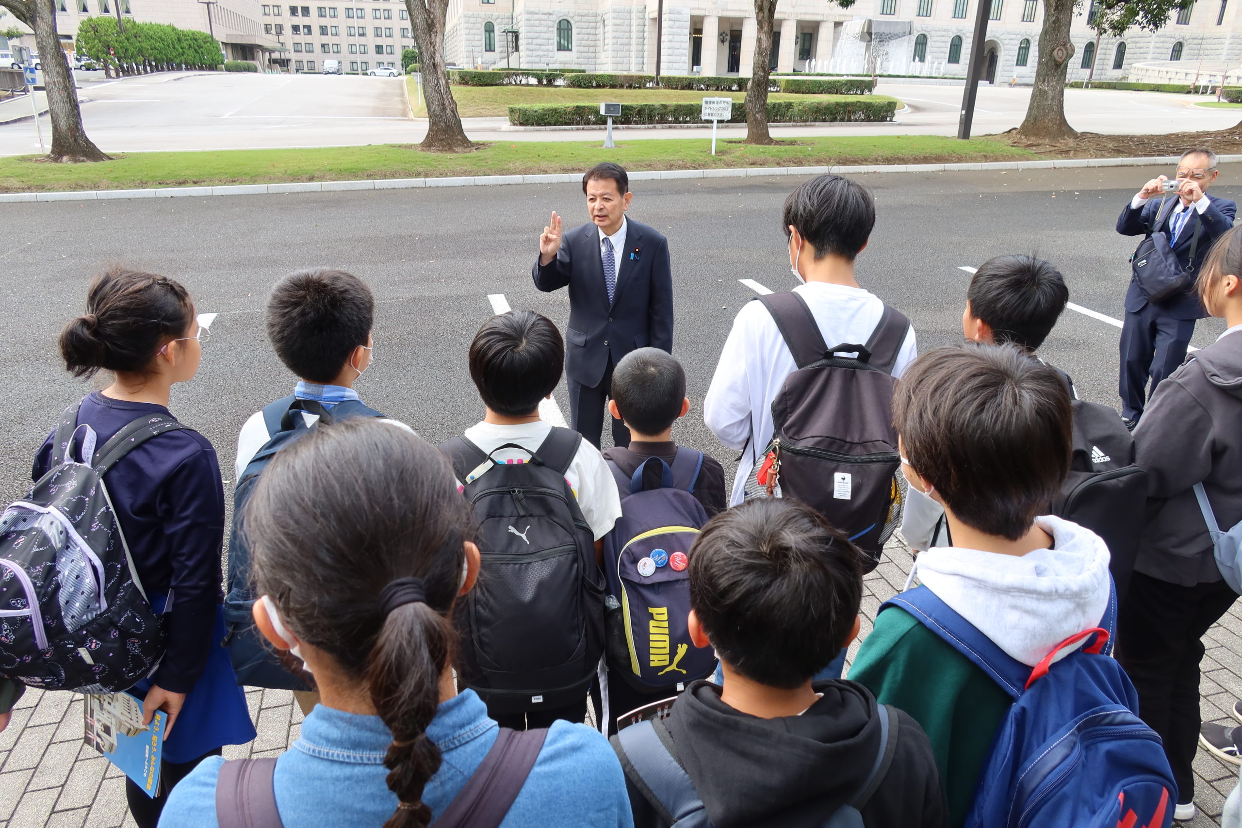 正午過ぎからは、高森町立高森北小学校の皆さん、午後1時過ぎからは、喬木村立喬木第一・第二小学校の皆さんが国会見学に来られ、私から、国会の役割などについて説明をするとともに、皆さんの今後の活躍を期待して激励の挨拶をしました。
