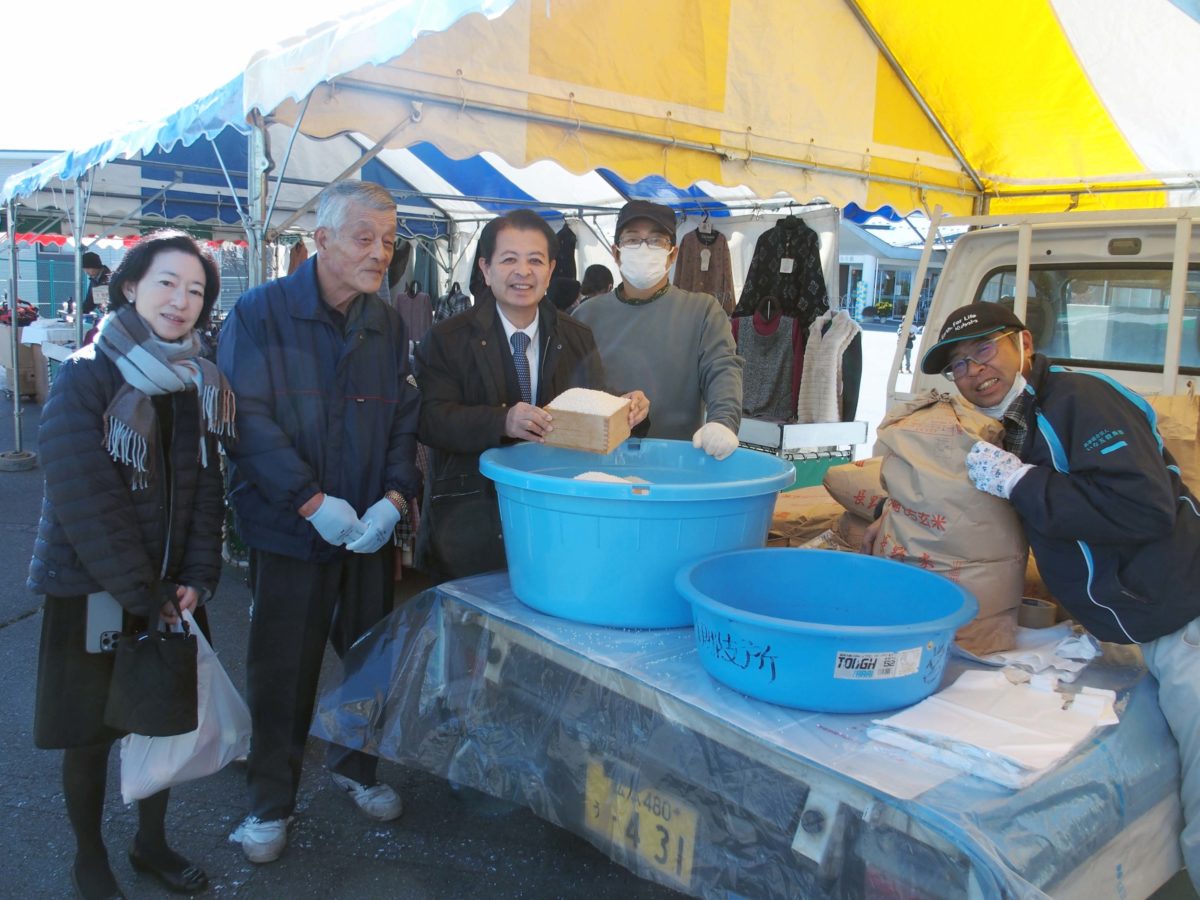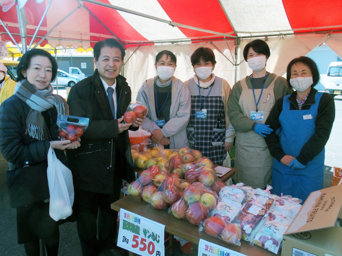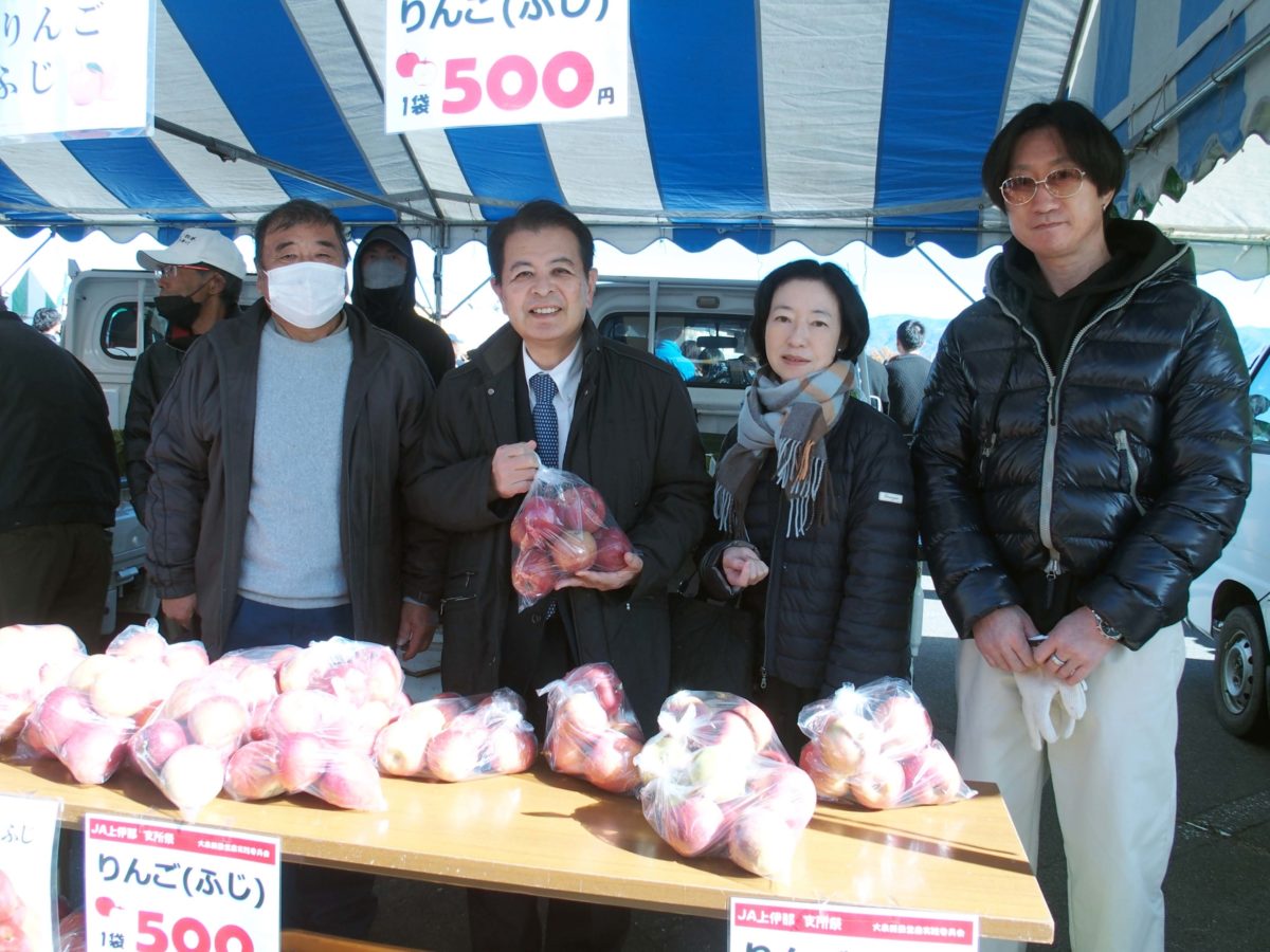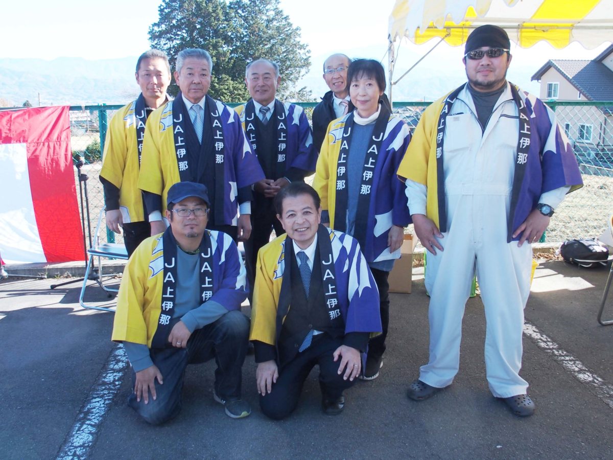 午前11時からは、伊那市のJA上伊那西箕輪支所において開催されたJA西箕輪支所祭を訪問しました。写真は、JA上伊那の幹部の皆様との記念写真です。