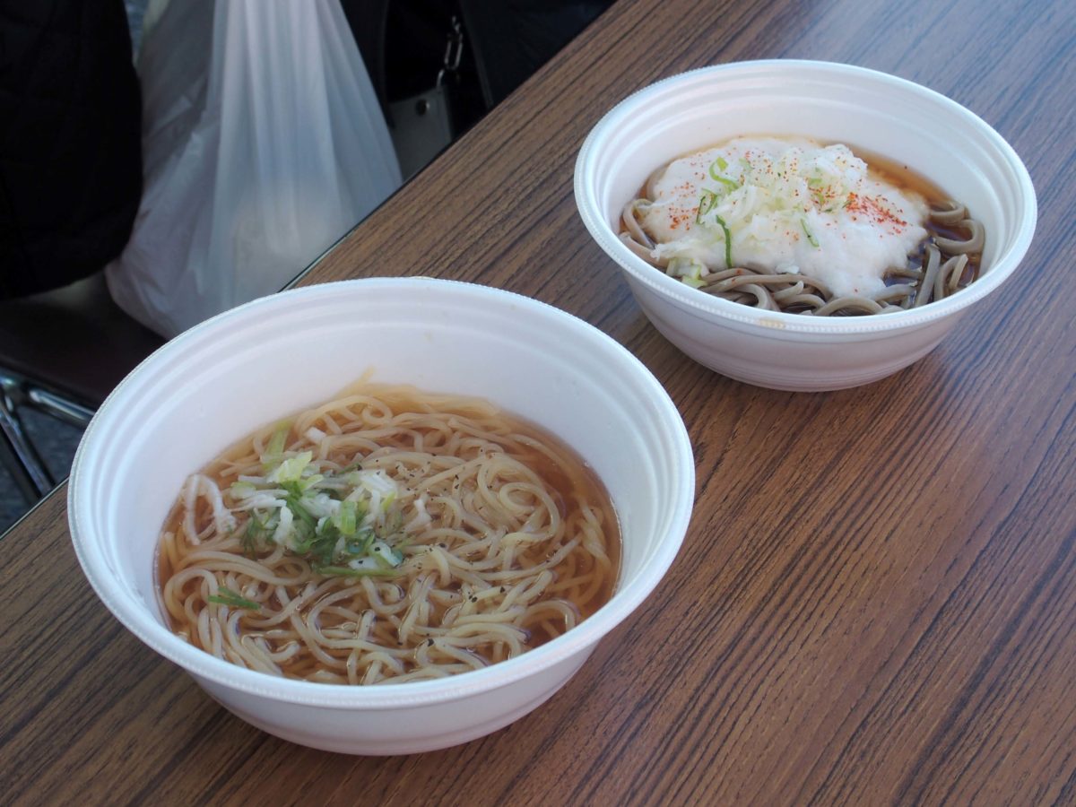 左がラーメン、右がととろをかけたお蕎麦です。どちらもとても風味豊かな美味しい麺でした。
