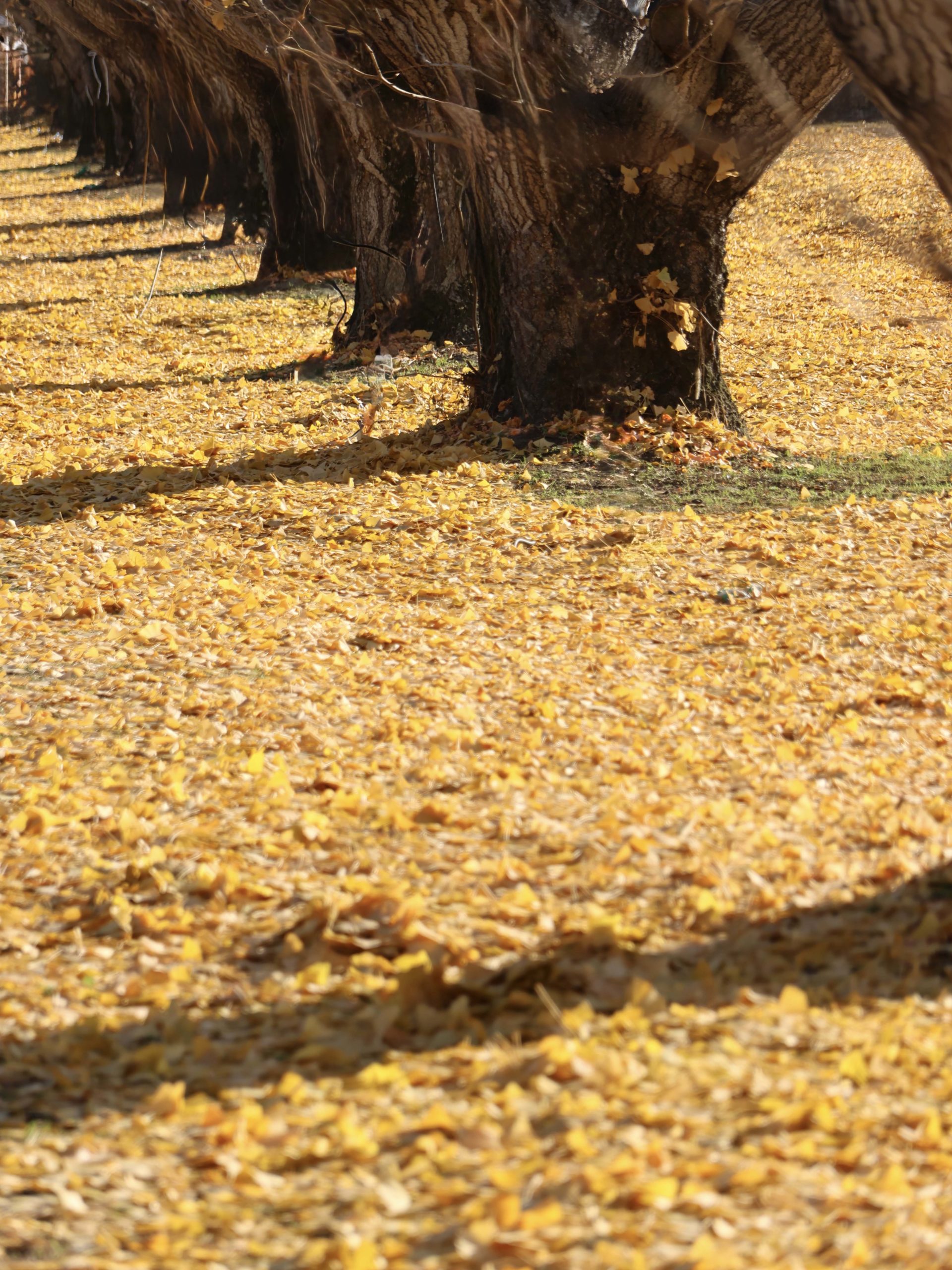 イチョウ並木の影が落ち葉の上に並んでいました。