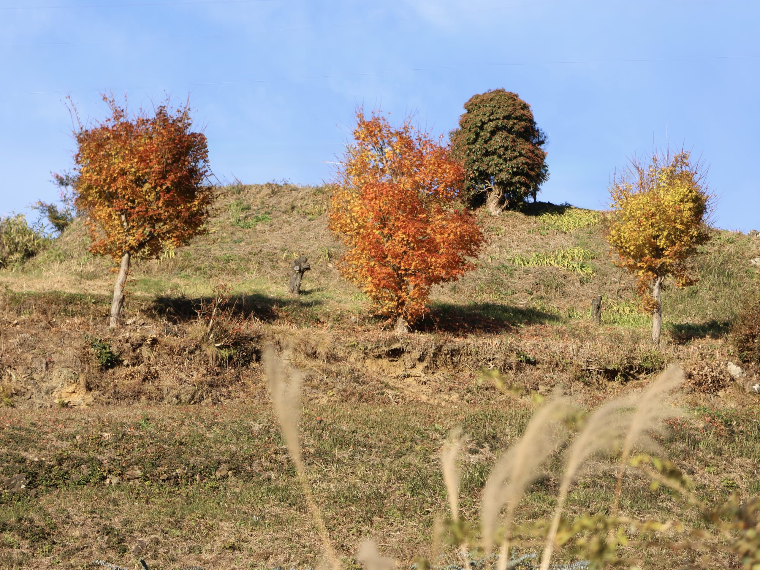 中川村内を移動中に紅葉したかわいい木々に出会いました。