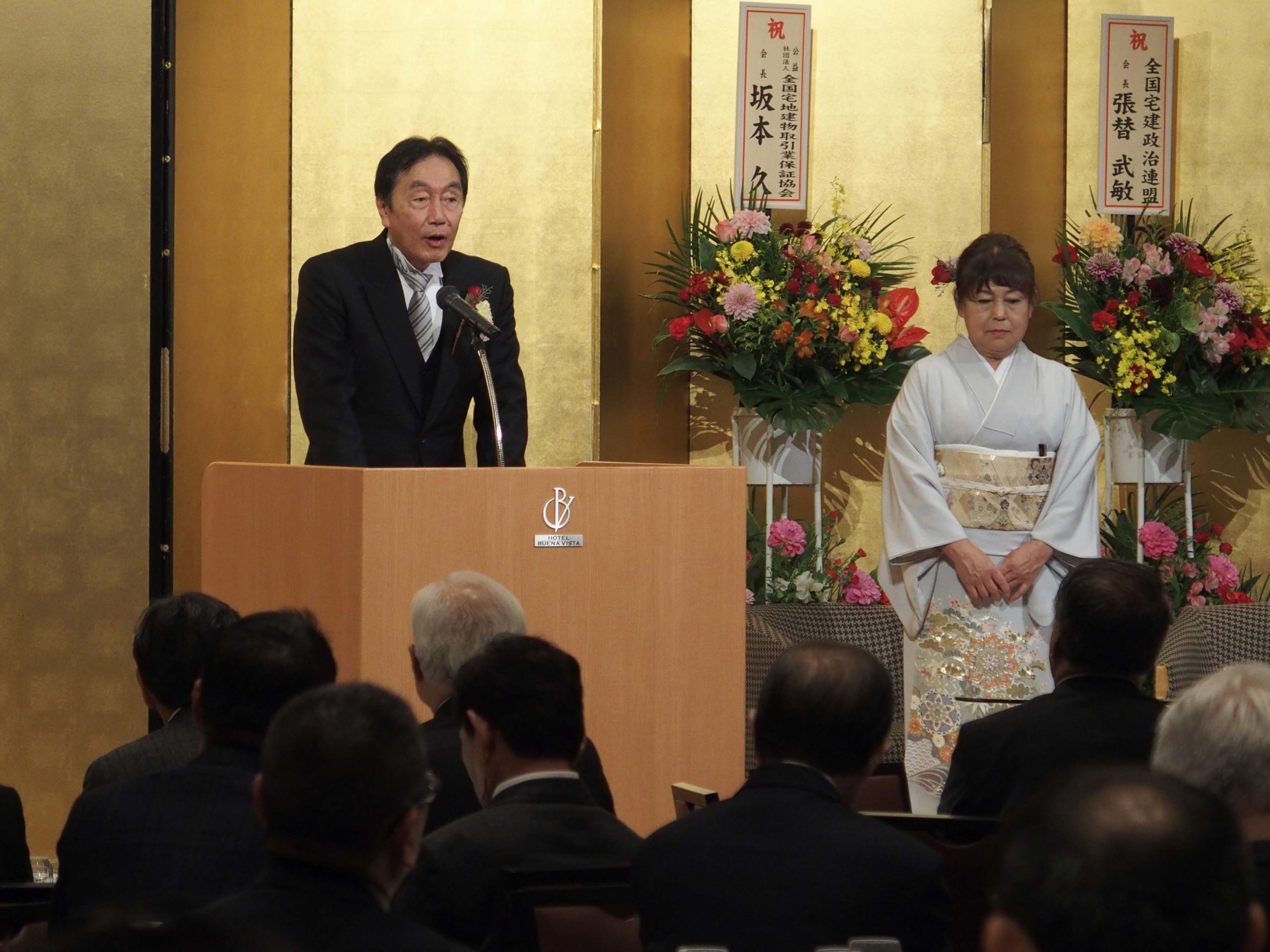 はじめに、発起人を代表して全国宅地建物取引業協会連合会の坂本久会長からご挨拶がありました。