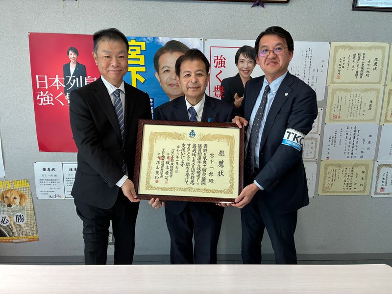 正午からは、TKC全国政経研究会の松﨑堅太朗先生、赤羽弘之先生から、推薦状を頂きました。