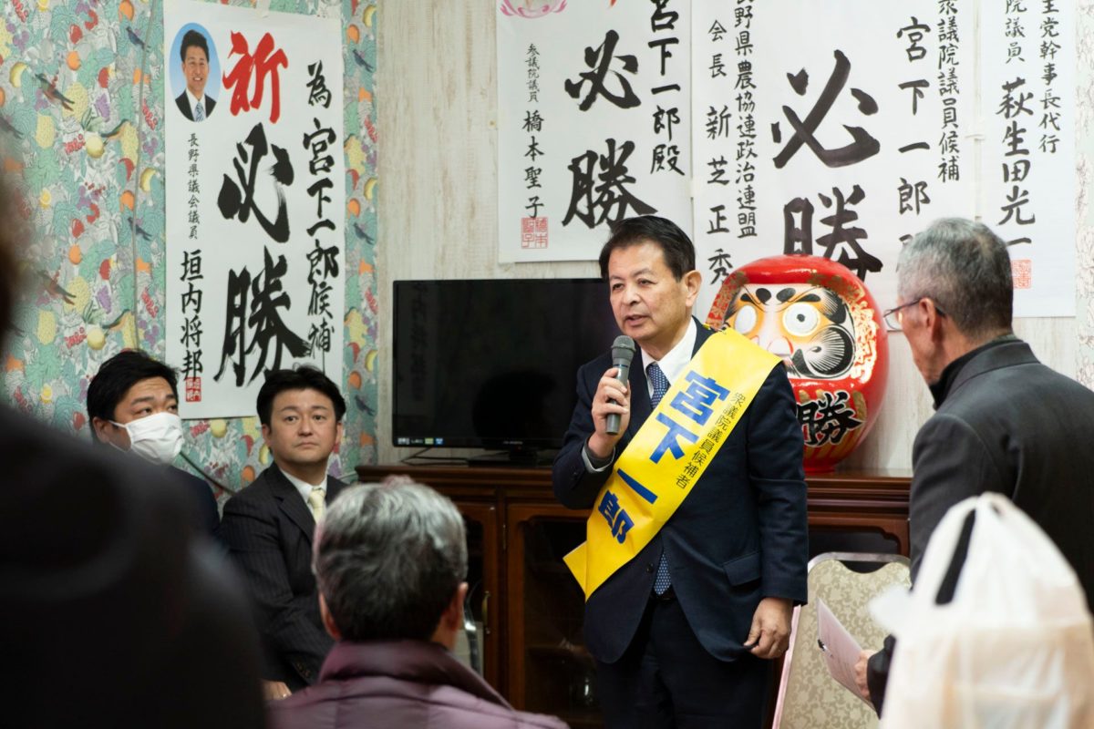 宮下一郎からは、高市早苗総理を先頭にして、日本列島を強く豊かにする政策を進め、大発展が期待される伊那谷の将来を切り拓くためにも、何としてもこの選挙の必勝に向け、全力を尽くすことを誓いました。