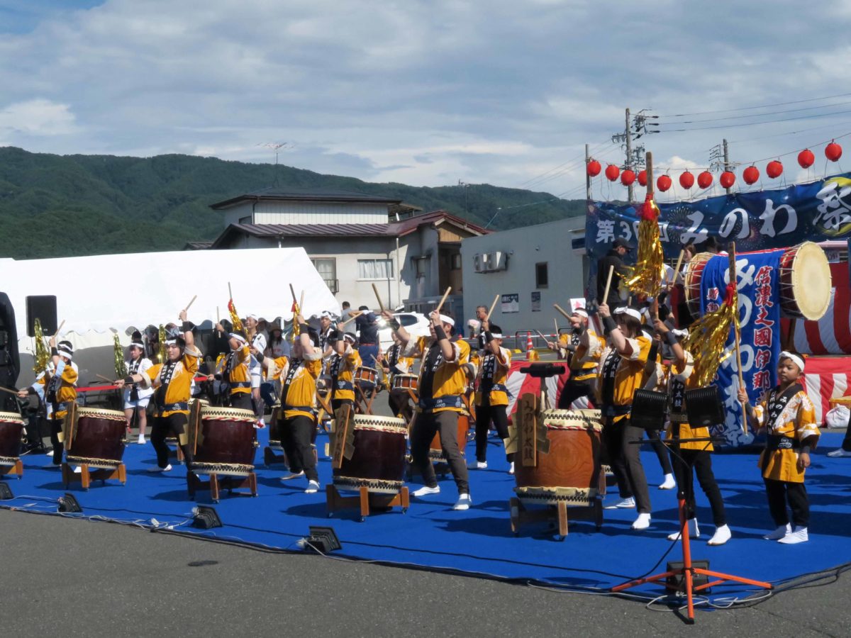 メインステージでは、消防団ラッパ隊やみのわ太鼓によるオープニングのセレモニーが行われました。