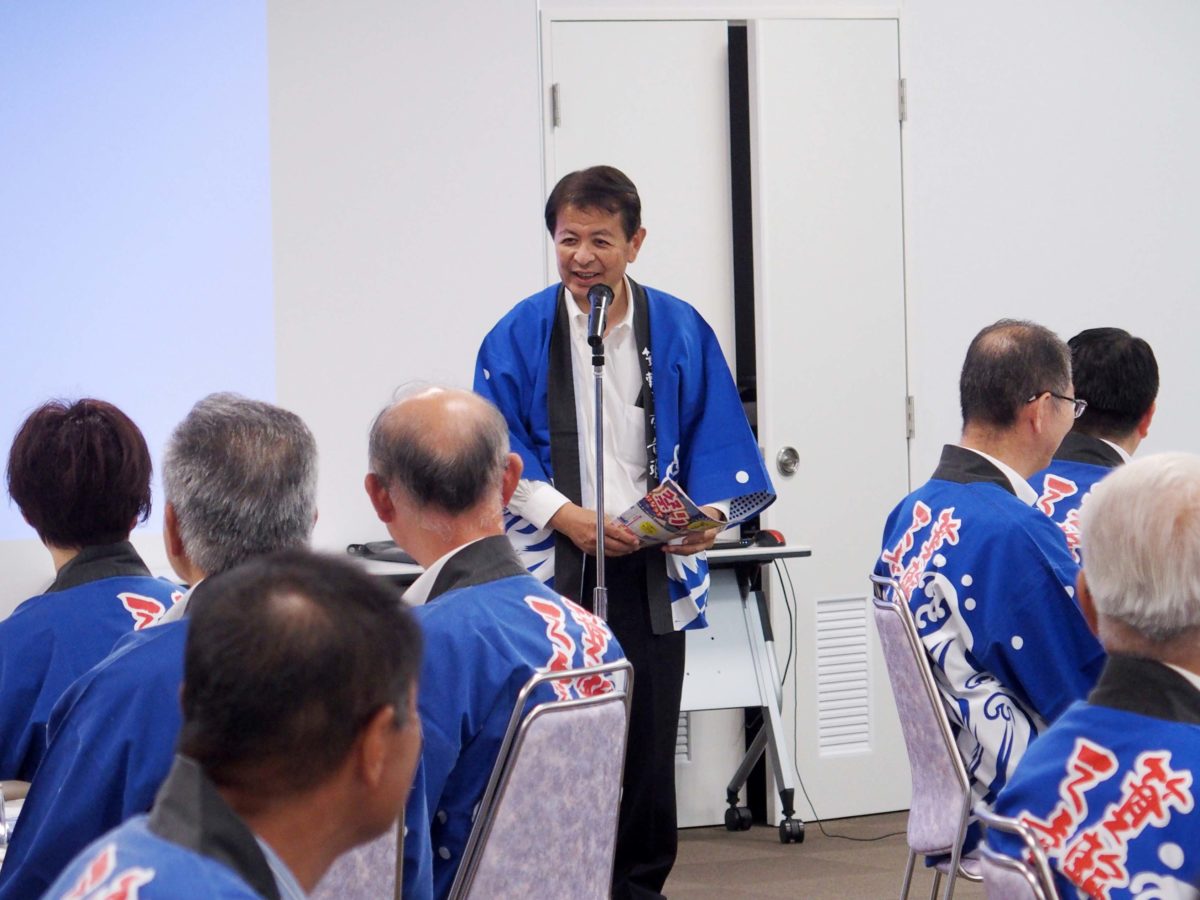 会のはじめに、箕輪町地域間交流推進協議会会長の白鳥政徳箕輪町長から、みのわ祭り開会にあたりご挨拶がありました。