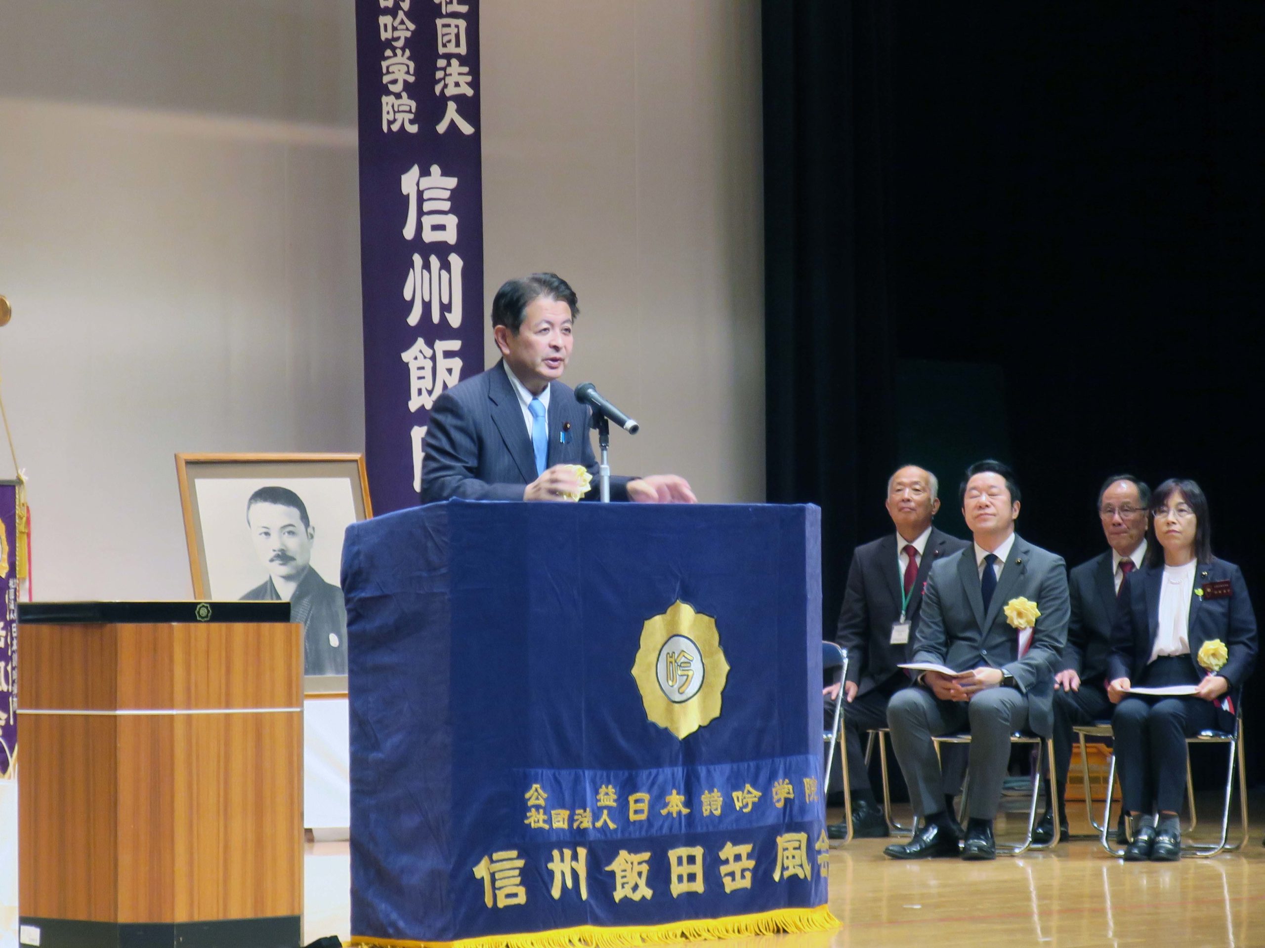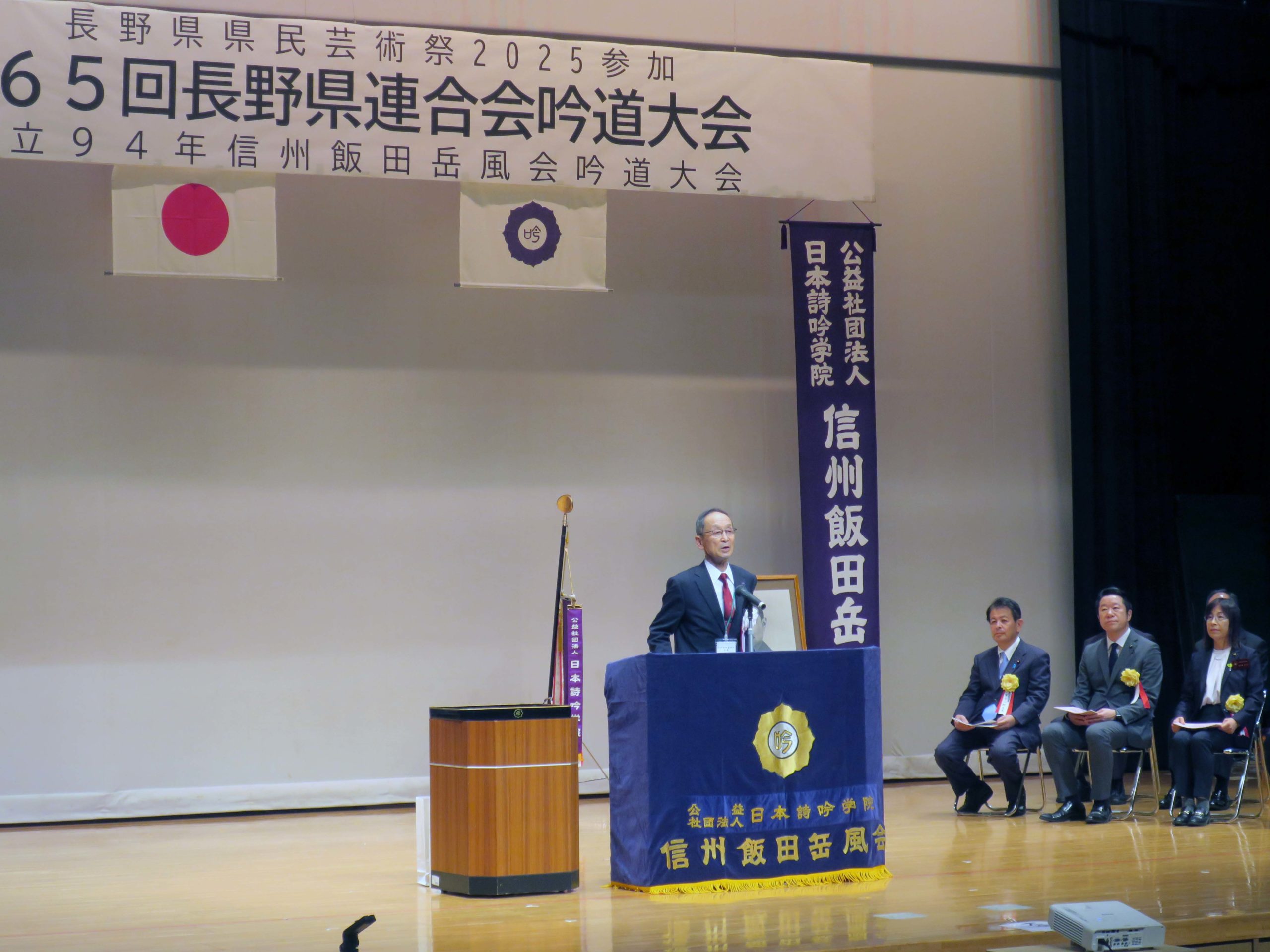 冒頭、国歌斉唱と大合吟が行われ、会場全員の朗々とした声が会場に響きました。
