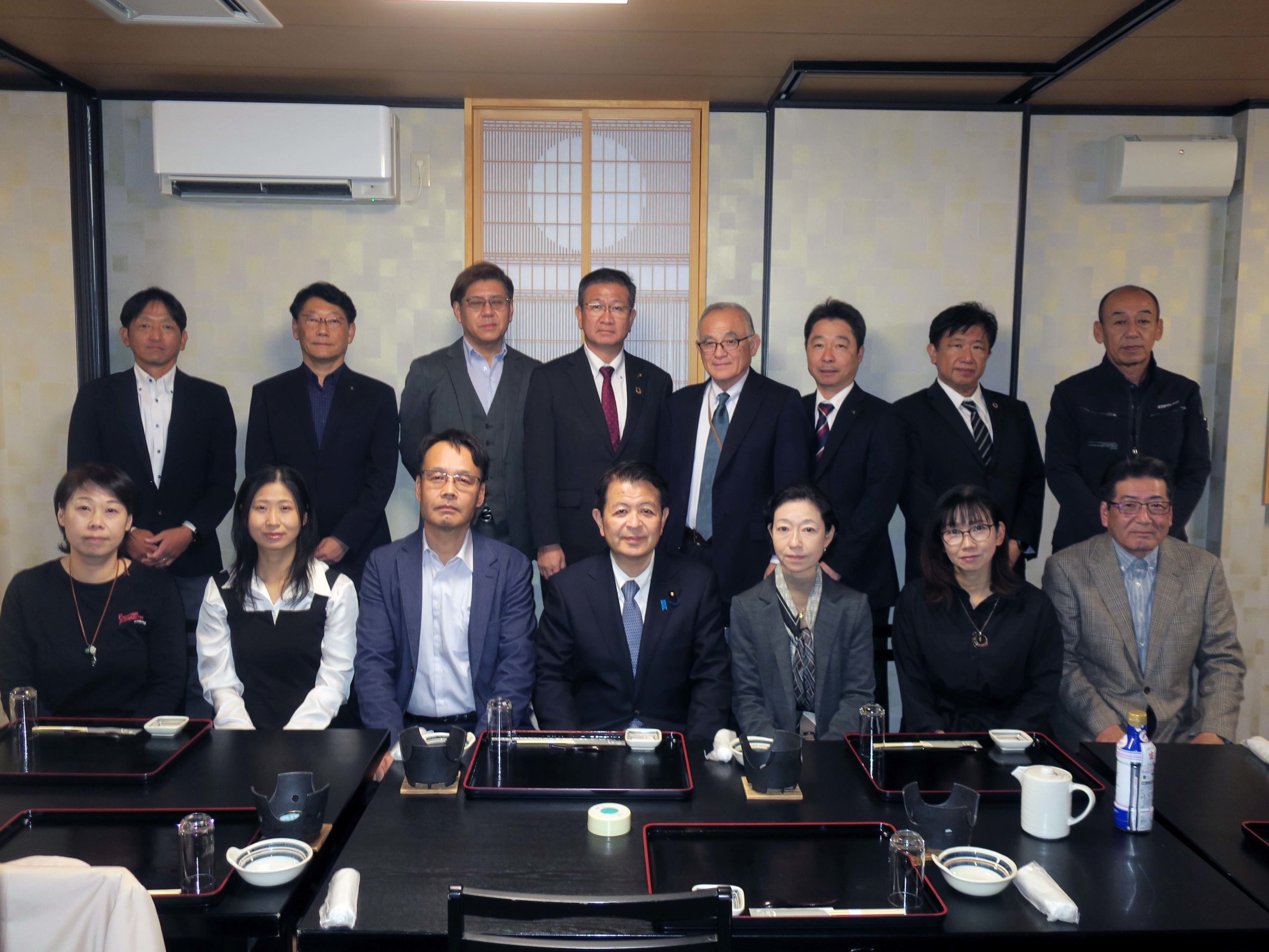 午後6時からは、飯田市で開催された、飯田下伊那地域の若手経営者による後援組織である「一友会」の皆様との懇親会に出席しました。はじめに、参加された皆様との記念写真を撮影しました。