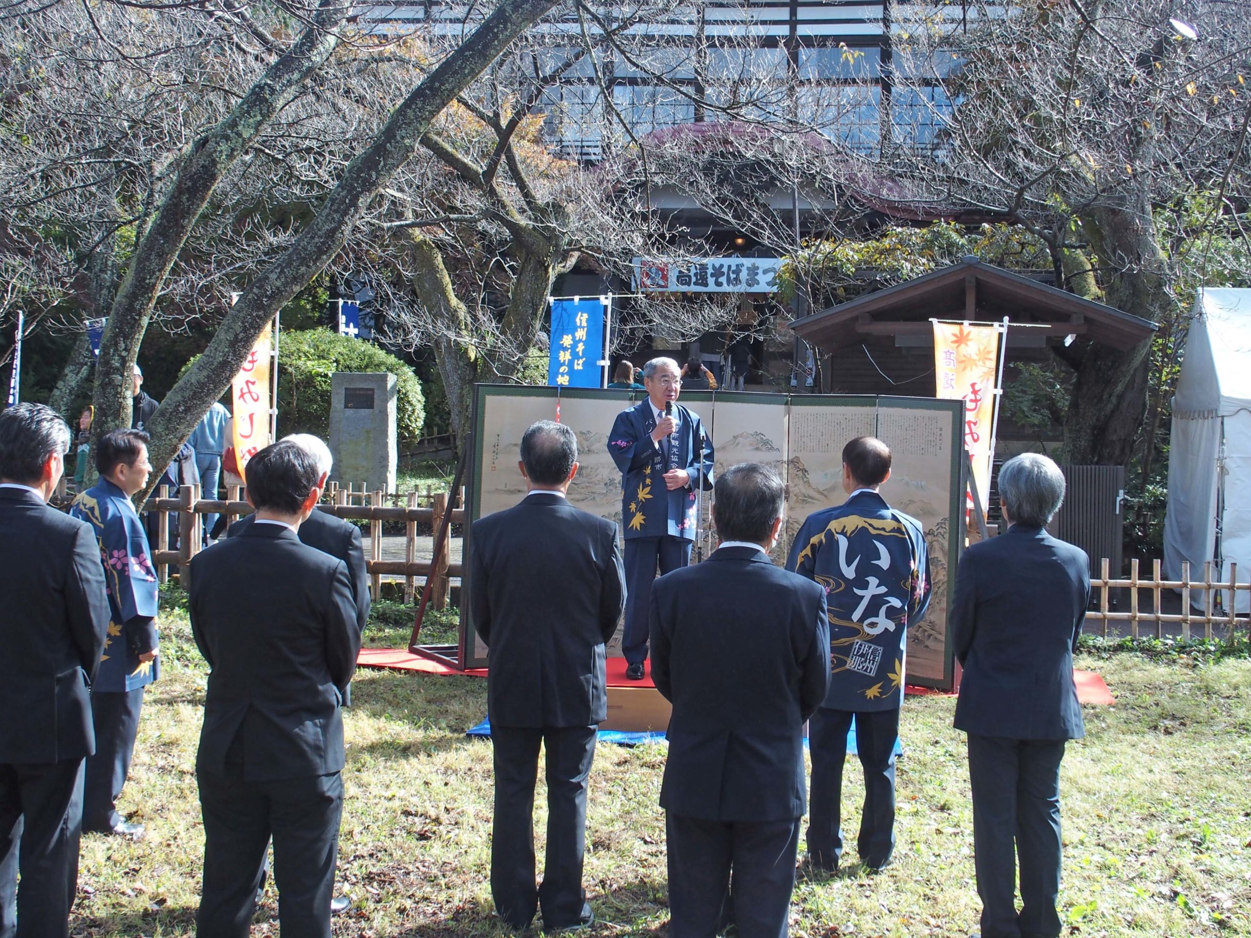 はじめに、高遠城址もみじ祭り実行委員会の西村博会長、続いて、伊那市の白鳥孝市長からご挨拶がありました。