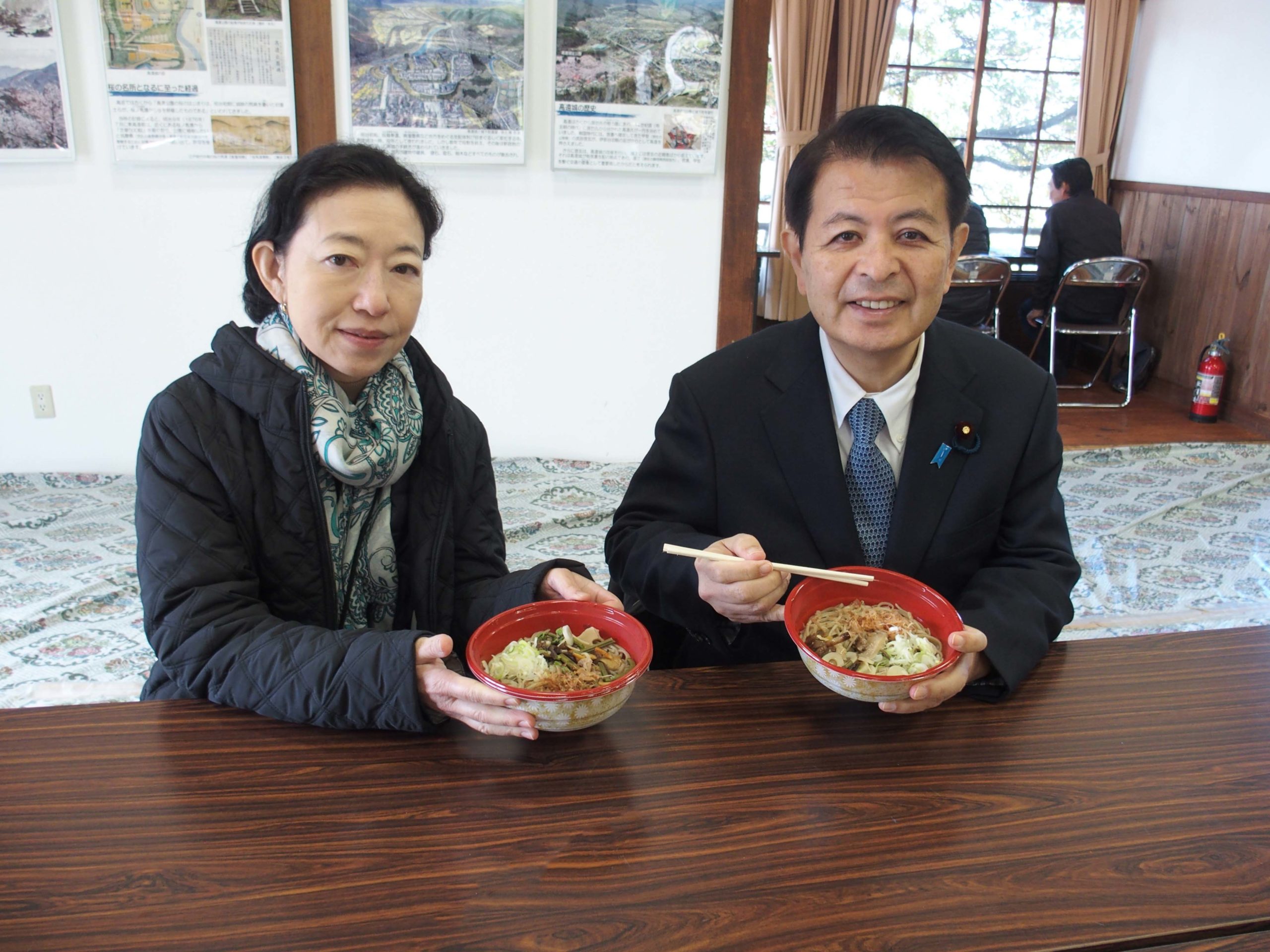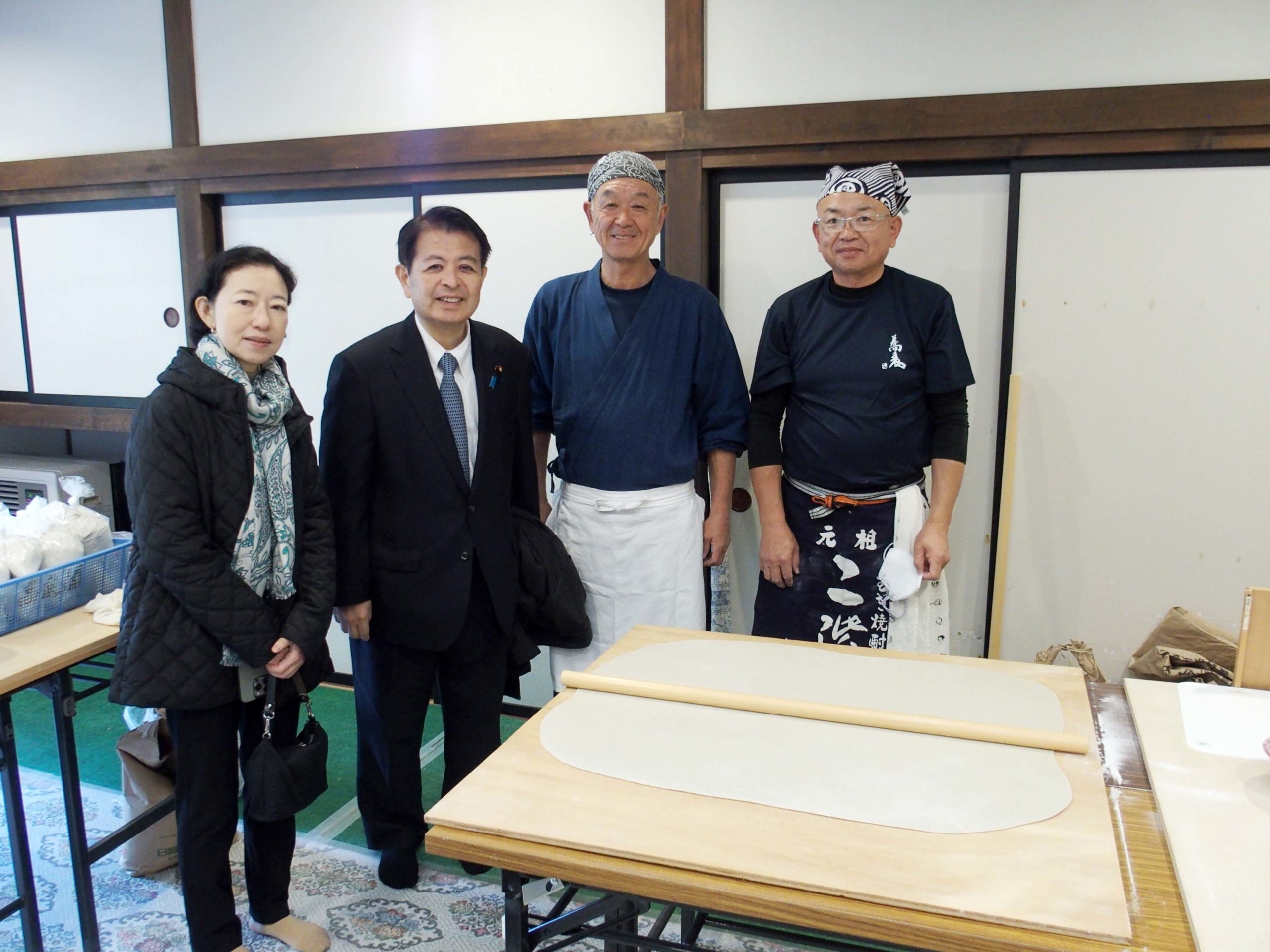 高遠閣内では、そば打ち名人の皆様がそばを打っておられました。