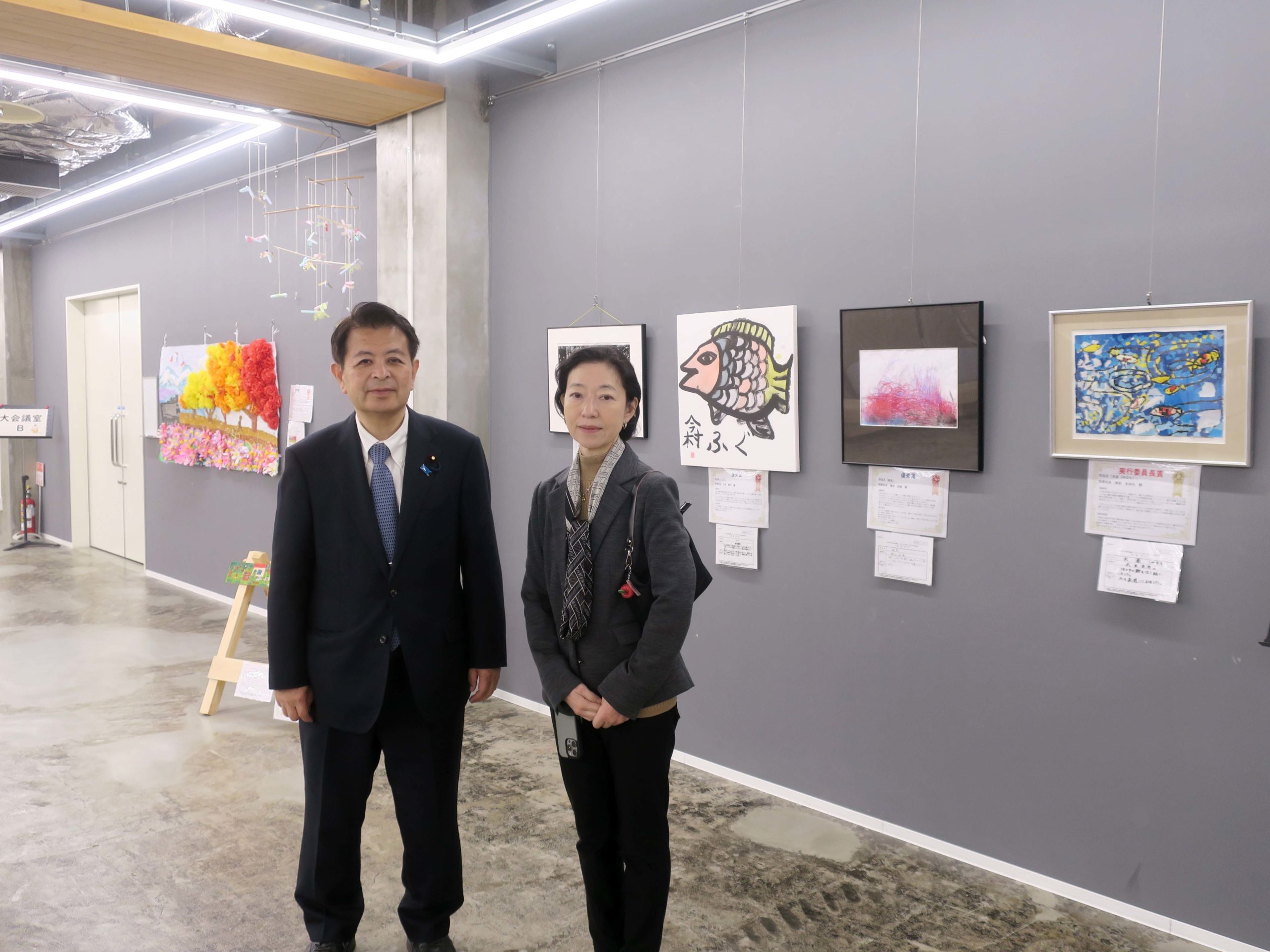 午後5時すぎには、飯田市の「丘の上結いスクエア」で開催されている「第11回障がい者文化芸術作品展 入賞作品特別展示」を鑑賞しました。作者の方の思いやパワーが感じられるとても魅力的で素敵な作品ばかりでした。