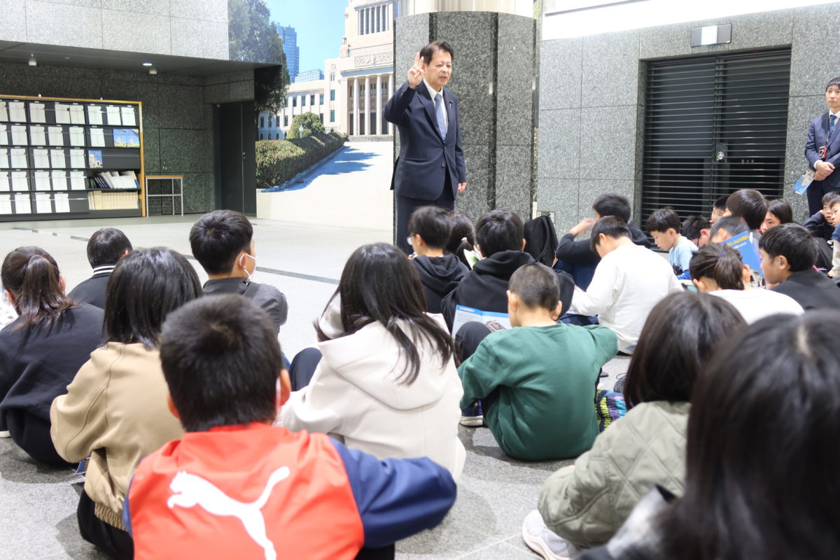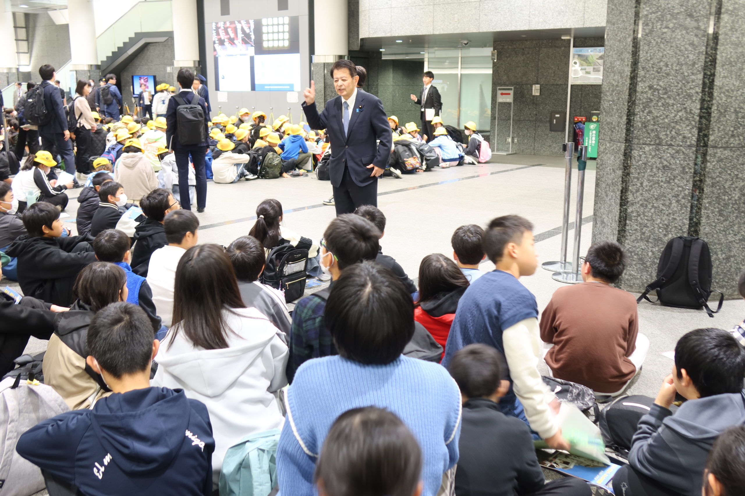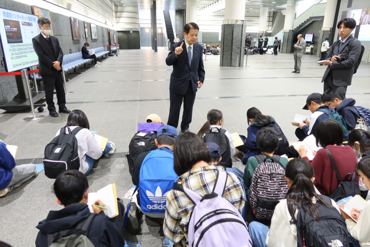 午前10時30分過ぎからは、地元から国会見学にみえた伊那市立高遠小学校、阿智村立阿智第二小学校、飯田市立追手町小学校の皆さんに、国会の役割や国会議事堂について説明し、皆さんの今後の活躍を期待して激励の挨拶をしました。