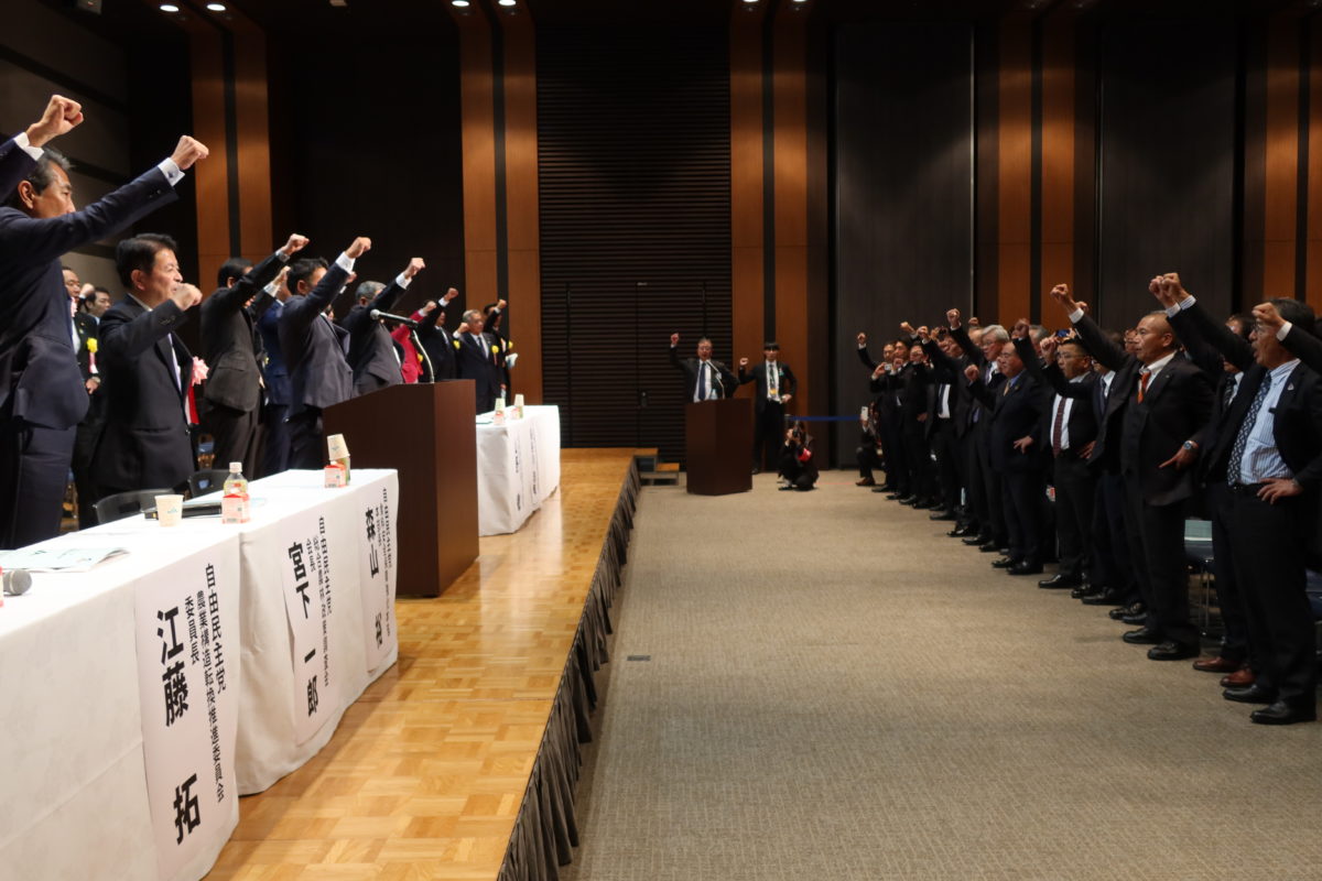 最後は、会場の出席者全員で「ガンバローコール」を行い、農政の発展に向けた思いを一つにしました。