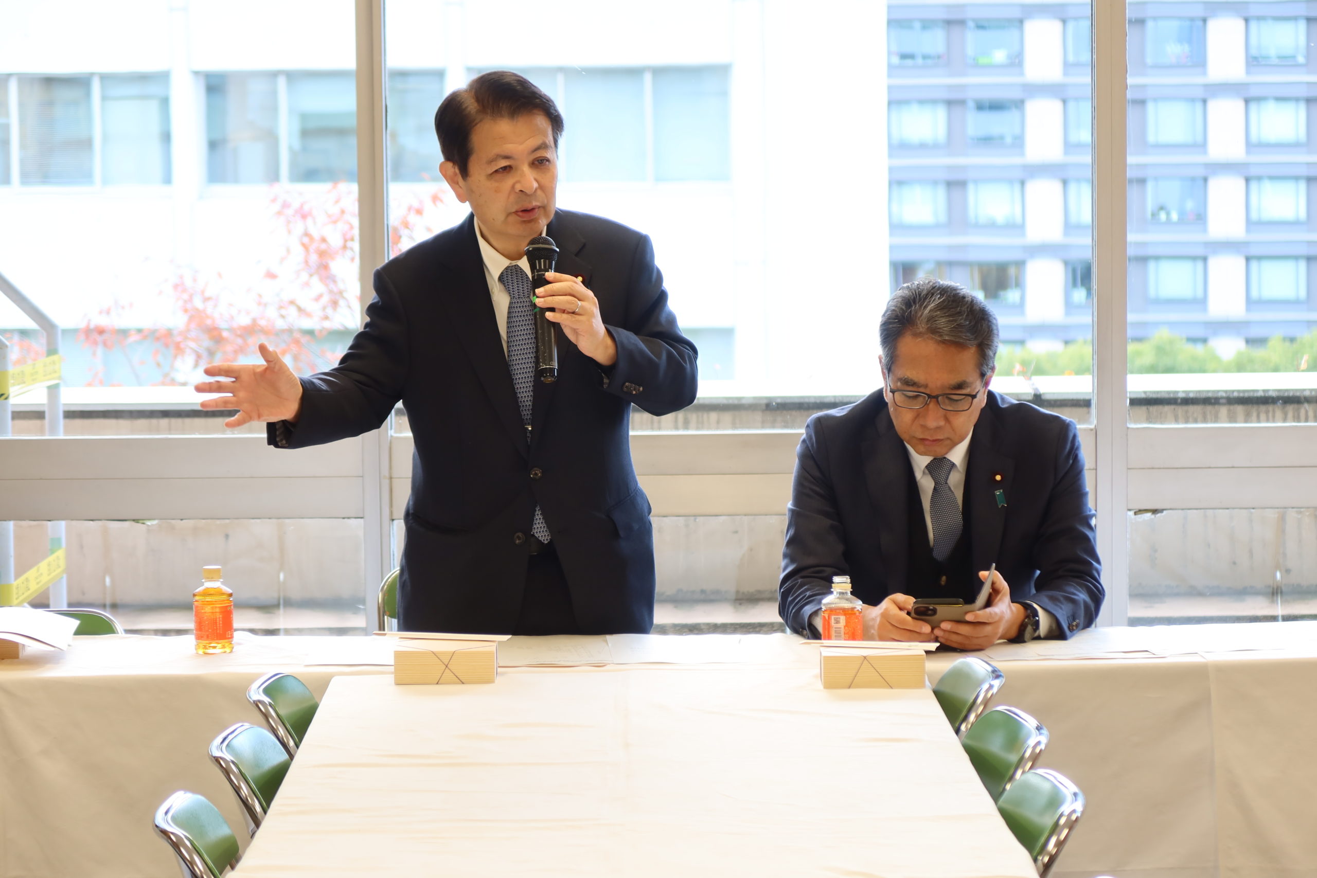 本日は、自民党長野県議団政調会長の寺沢功希先生から、県議団の先生方で取りまとめられた13項目にわたる「令和8年度国の施策並びに予算に対する要望書」について説明を受け、具体的なご提言を頂くとともに先生方との意見交換を行いました。
