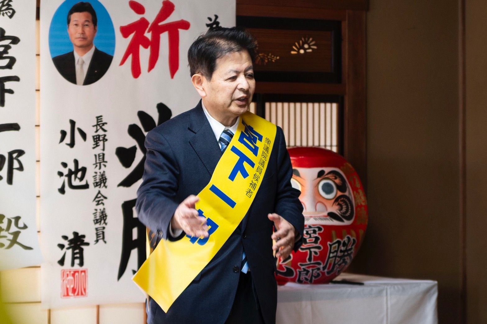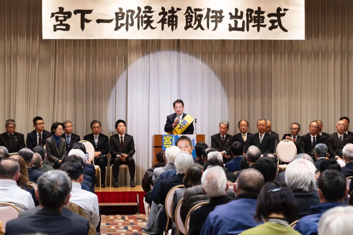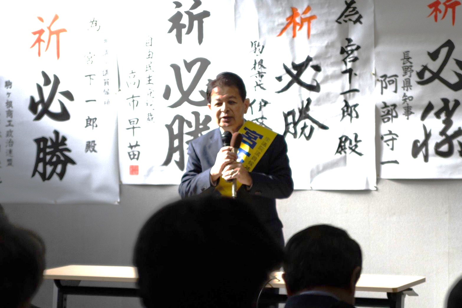 宮下一郎から、今回の選挙に向けた決意表明と、「伊那谷を強く豊かにする」力強い演説がありました。