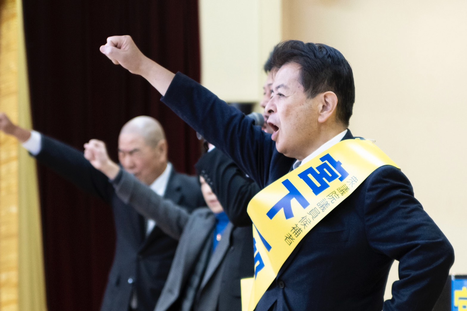 皆さまと「ガンバローコール」で、必勝を誓いました。