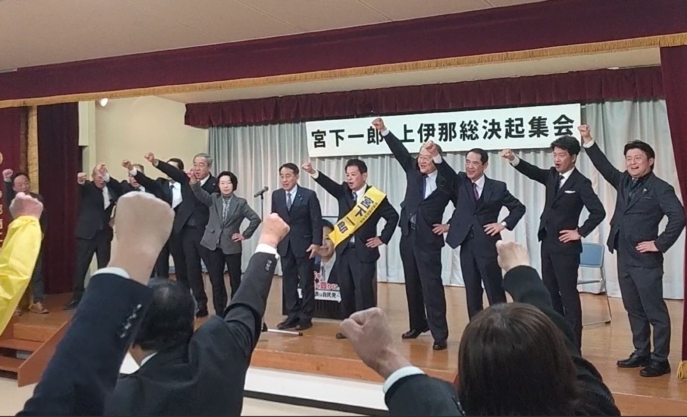 (秘書です)1月31日、衆議院選挙の5日目は、大鹿村・豊丘村・喬木村で遊説を行い、飯田市で飯伊総決起大会、伊那市で上伊那総決起集会を開催しました。