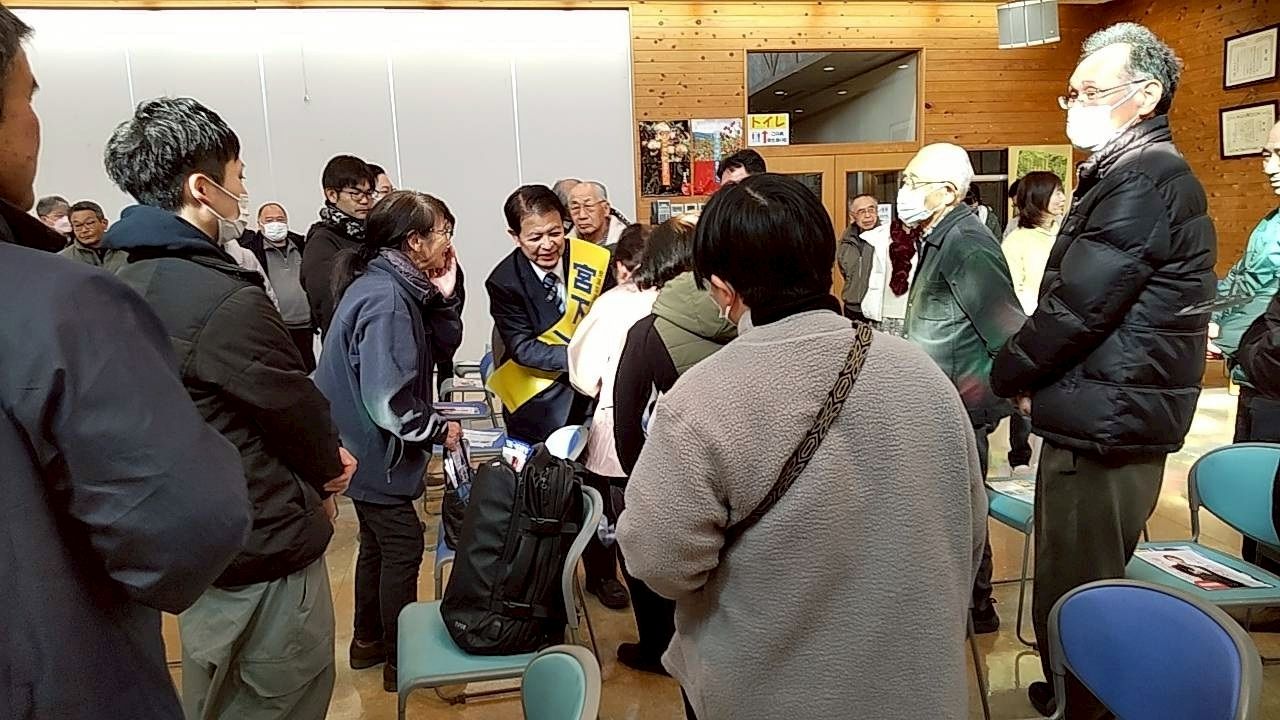 本日最初の演説会は大鹿村交流センターで開催しました。